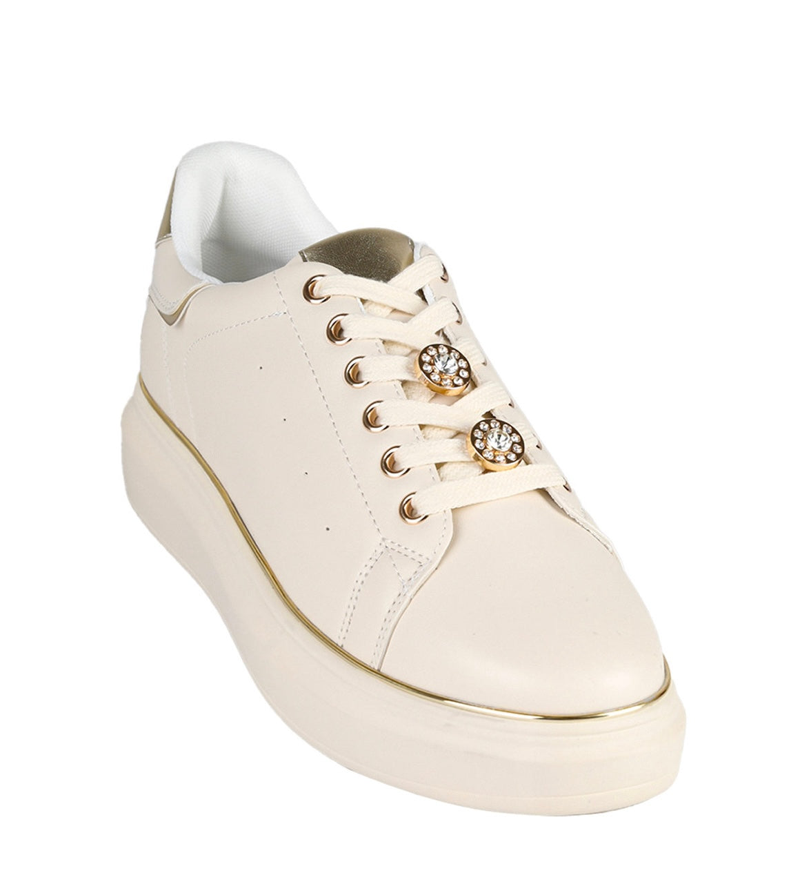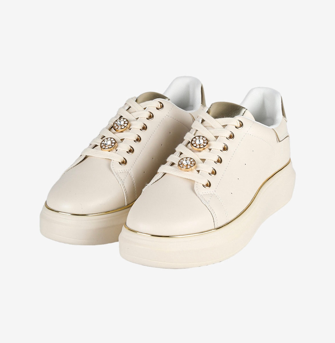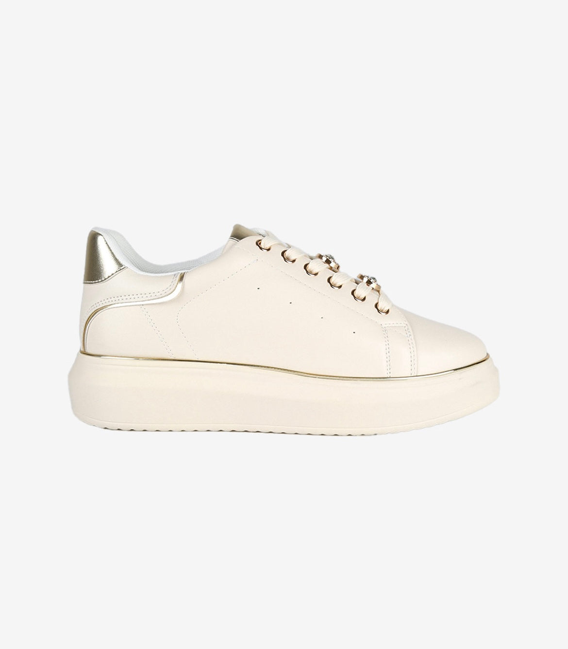 Sneakers da donna con tomaia in ecopelle e dettaglio gioiello sui lacci.
