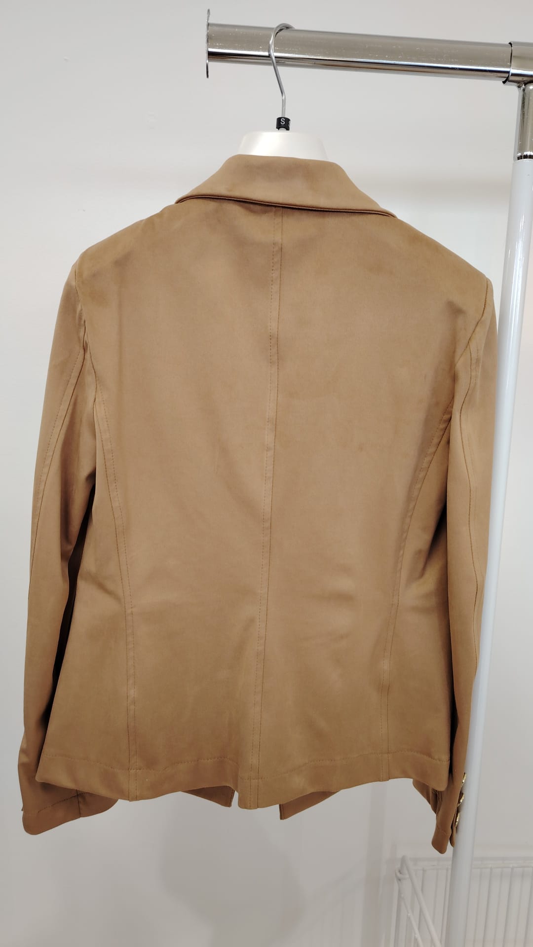 Giacca donna in sued con tasche alte, a un bottone centrale. Botto i sui polsini . Prodotto in Italia MADE IN ITALY.