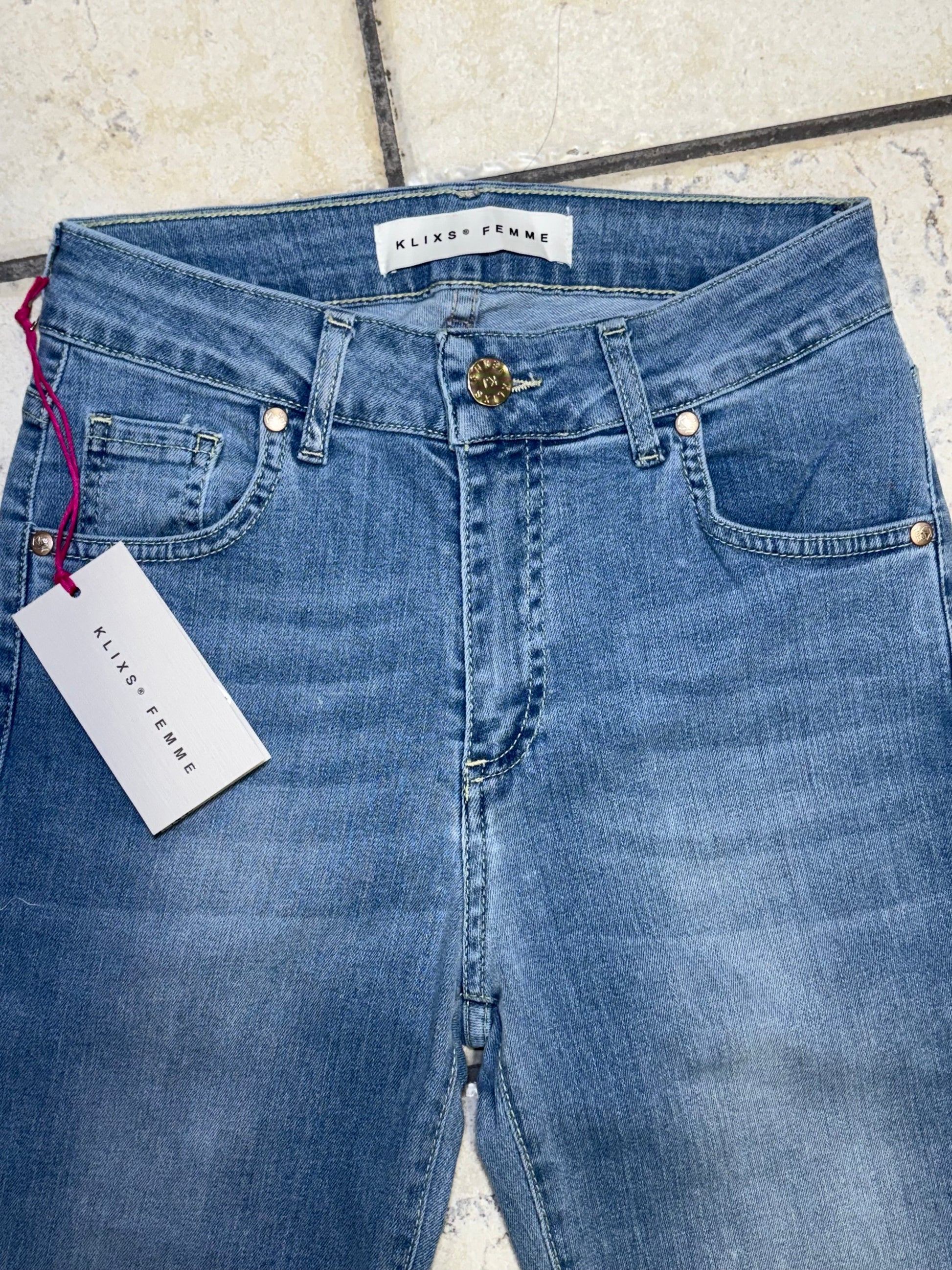 Jeans donna vita alta, gamba slim fit. Elasticizzato super morbido e confortevole MADE IN ITALY lunghezza gamba 72cm.