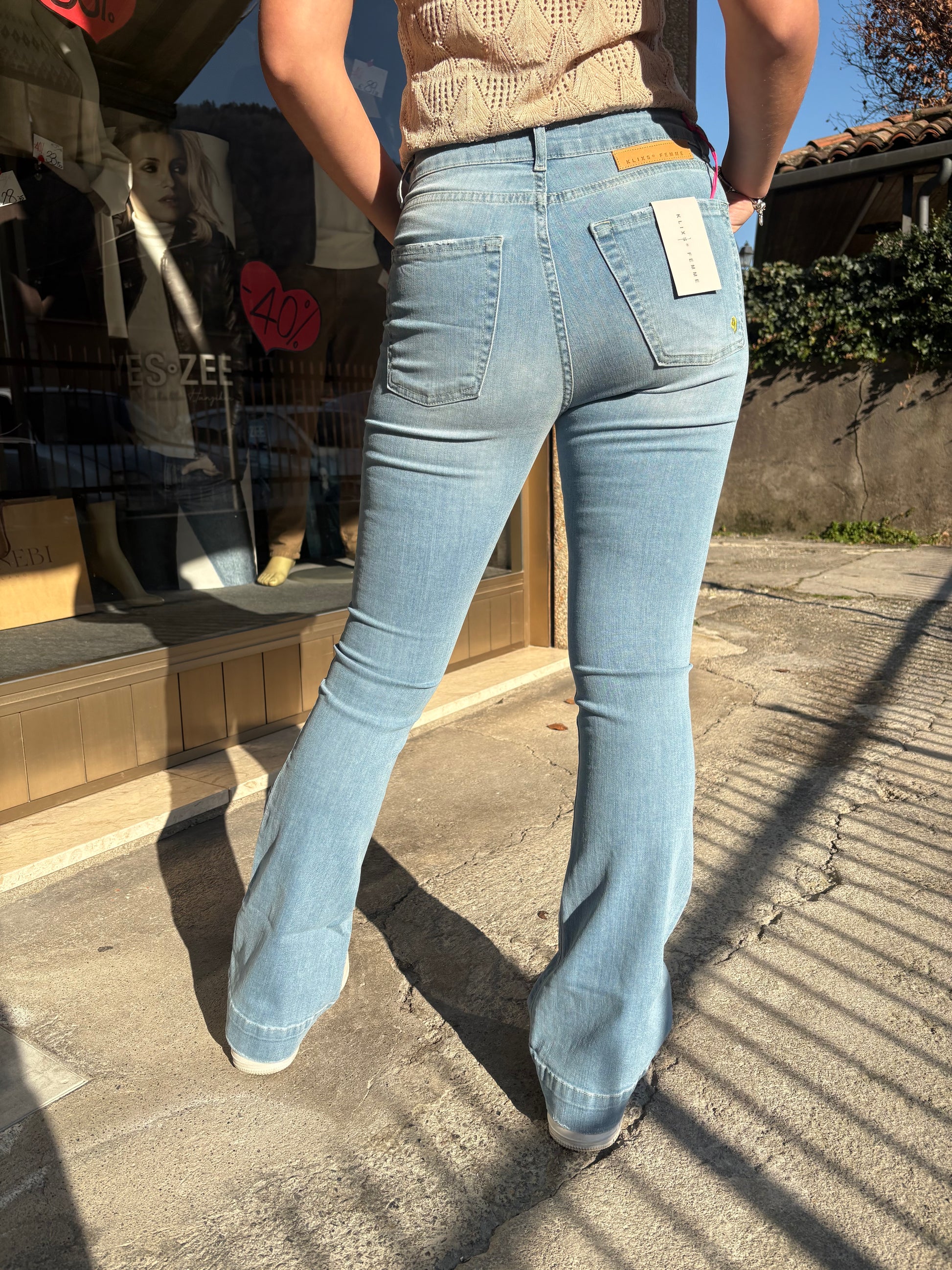 Jeans donna vita regolare, zampetta, con orlo alto. lavaggio chiaro variante unica MADE IN ITALY. Lunghezza gamba 82cm.