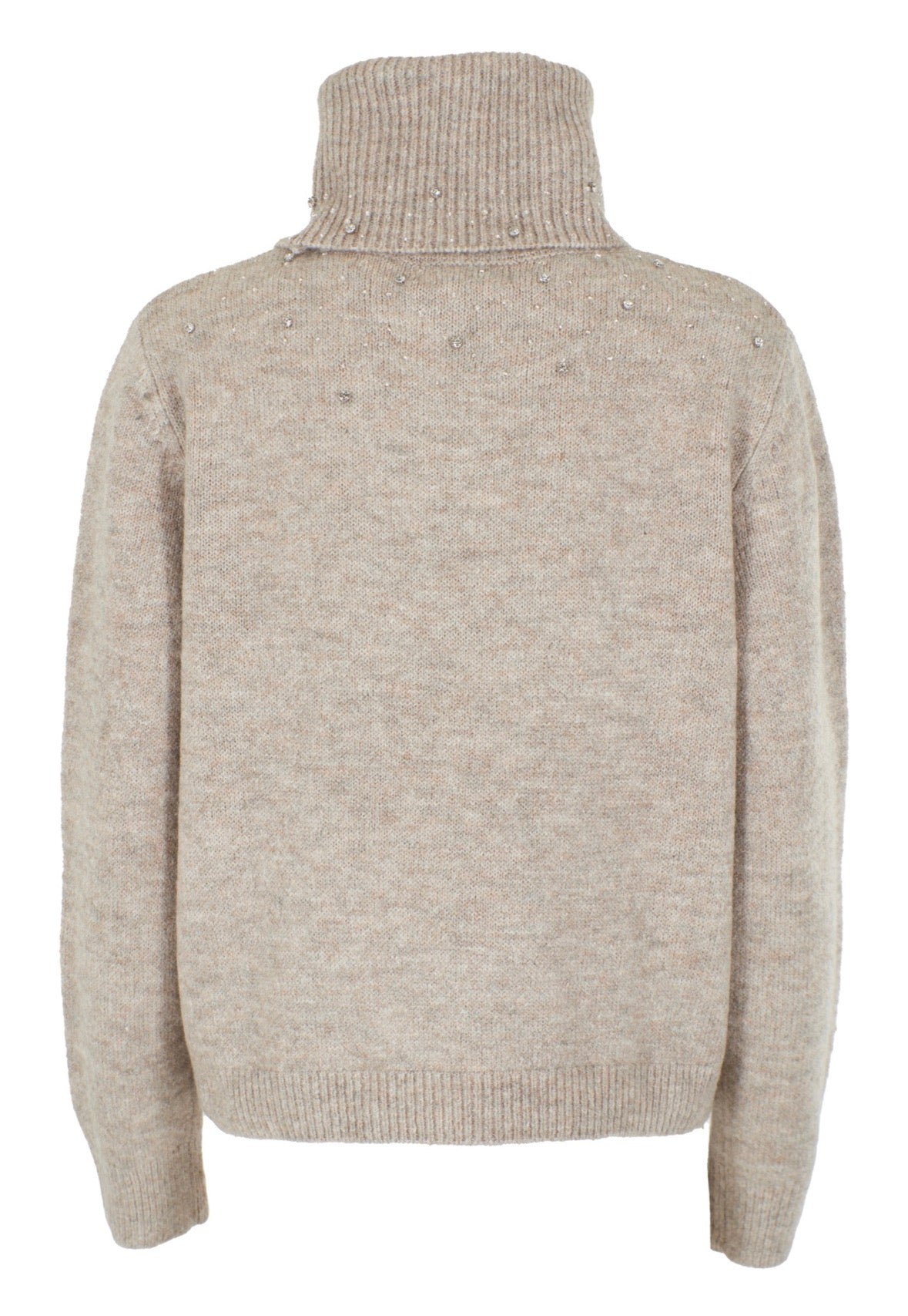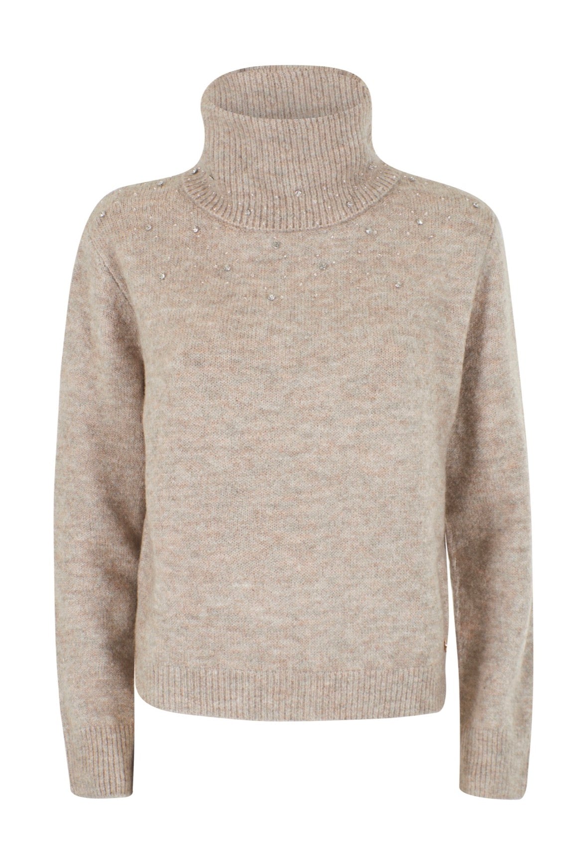 Maglia dolcevita collo morbido, con applicazioni sul davanti e retro. Vestibilitá comoda, lunghezza a vita. Calda e avvolgente.
