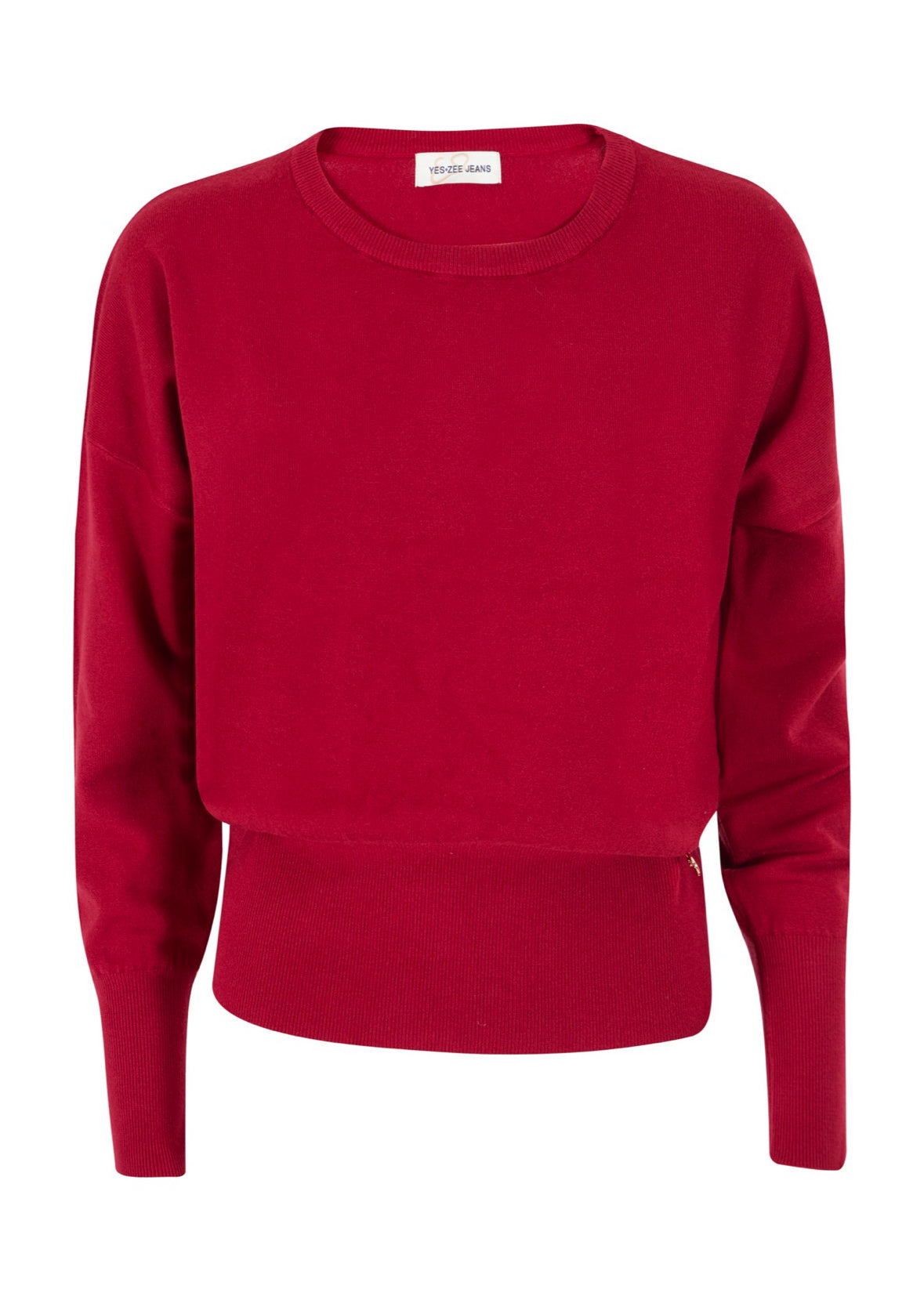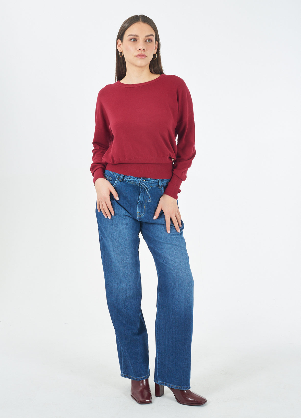Maglia donna con fascia alta in vita, girocollo manica lunga.