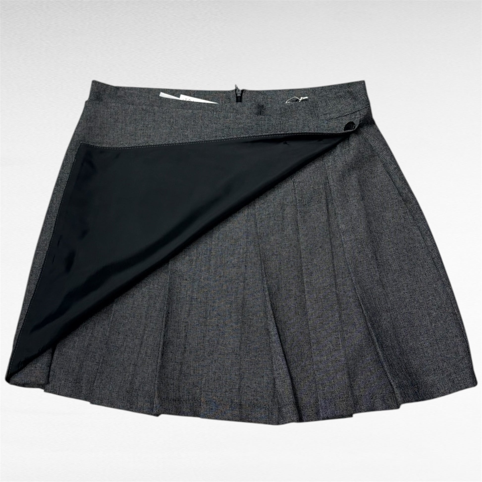 Gonna donna, zip sul retro,a pieghe con forma geometrica con bottone davanti, senza fodera. FABBRICATO IN ITALIA