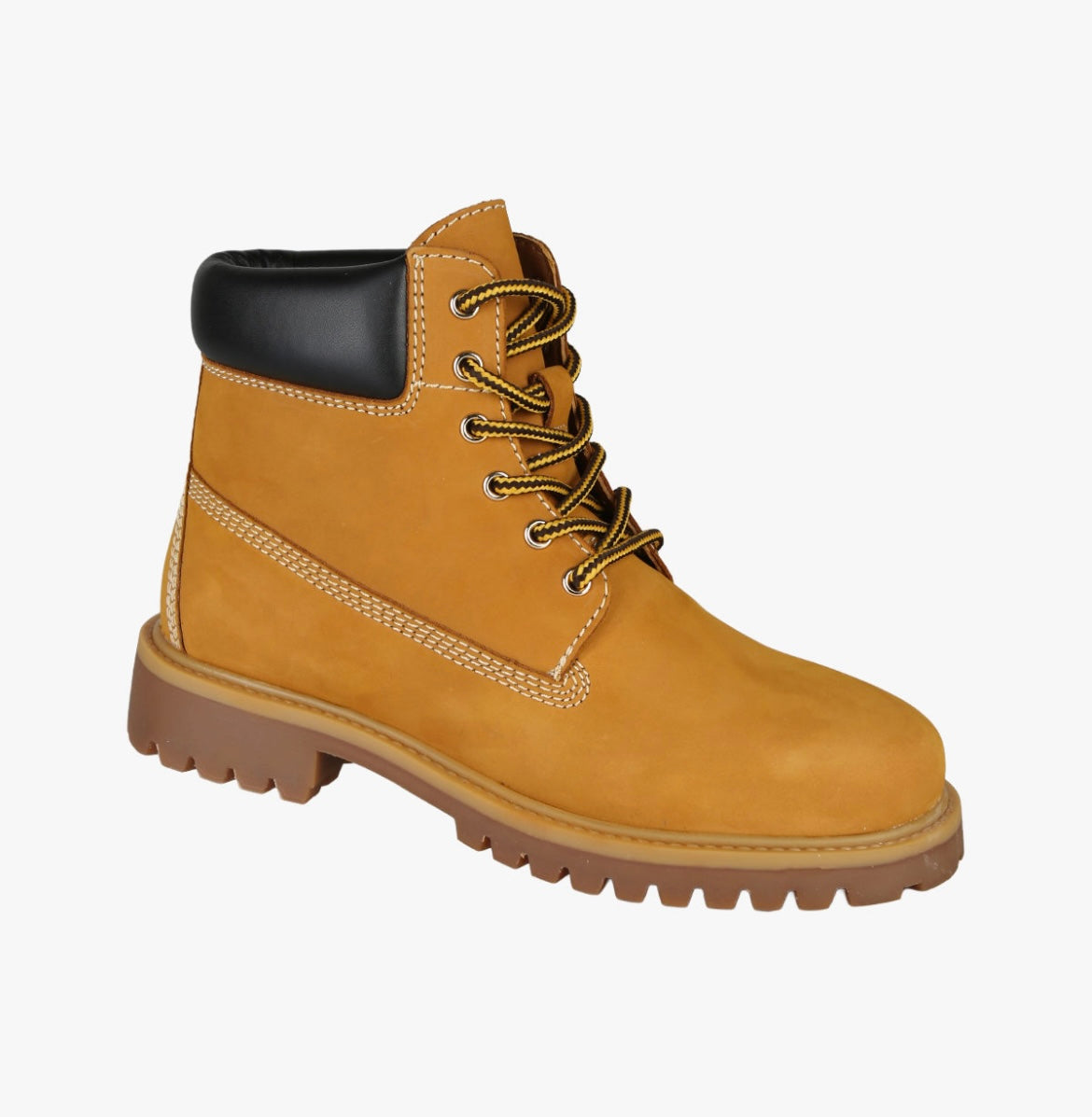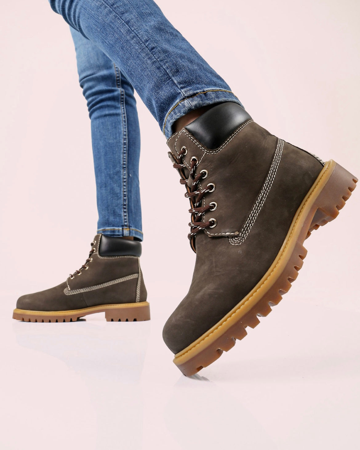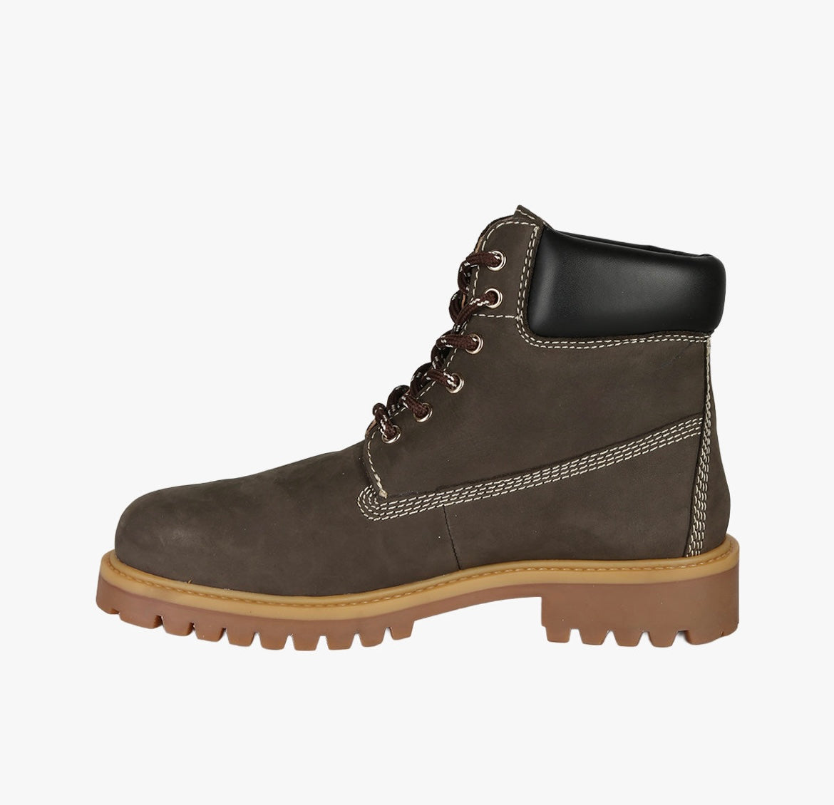Anfibi donna in pelle, con cuciture in contrasto colore e morbida cavigliera imbottita. Interno foderato in pelle scamosciata e suola a carrarmato in gomma.