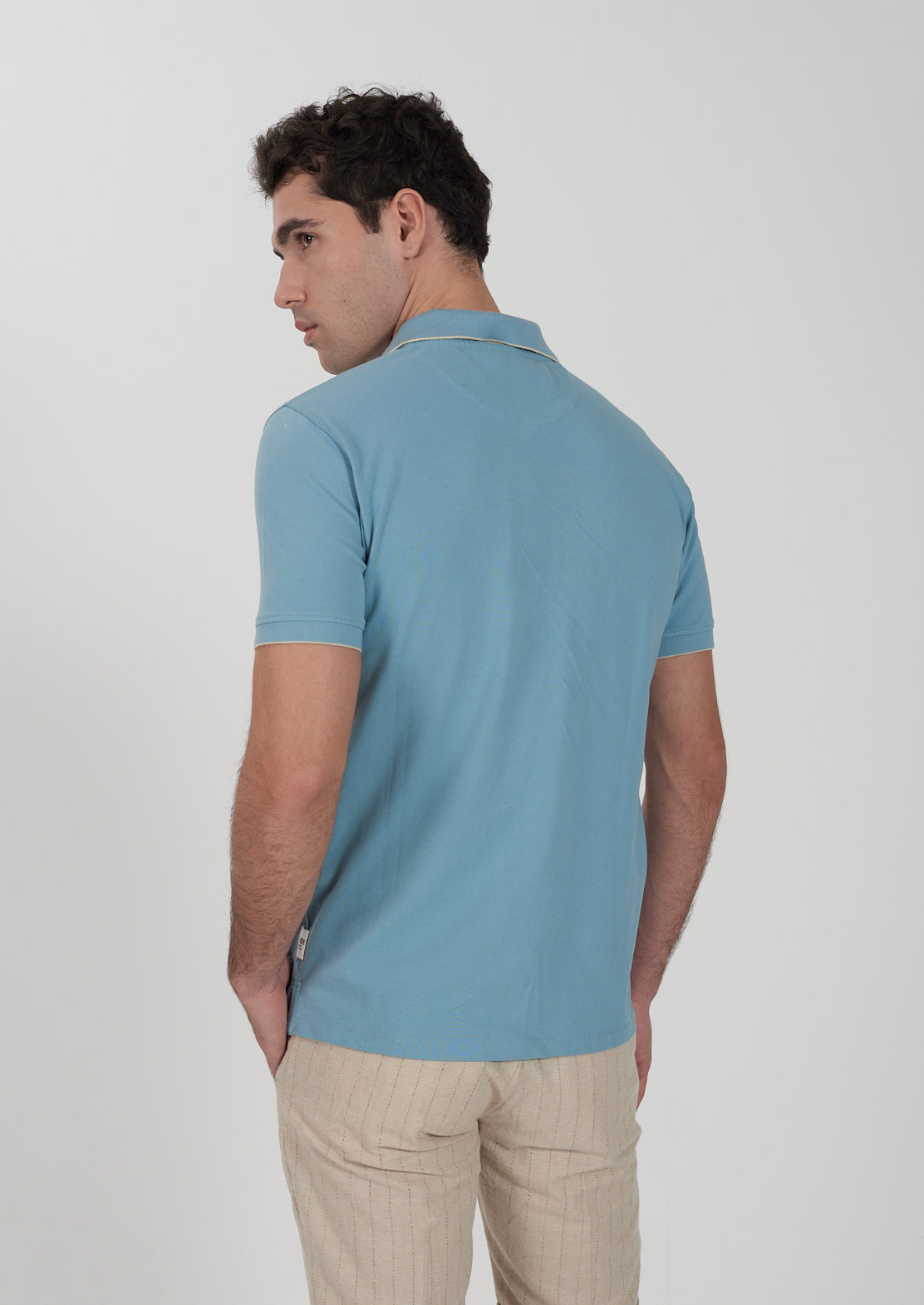 Polo uomo mezza manica, tinta unita, con riga sul colletto beige che riprende il fondo delle maniche.