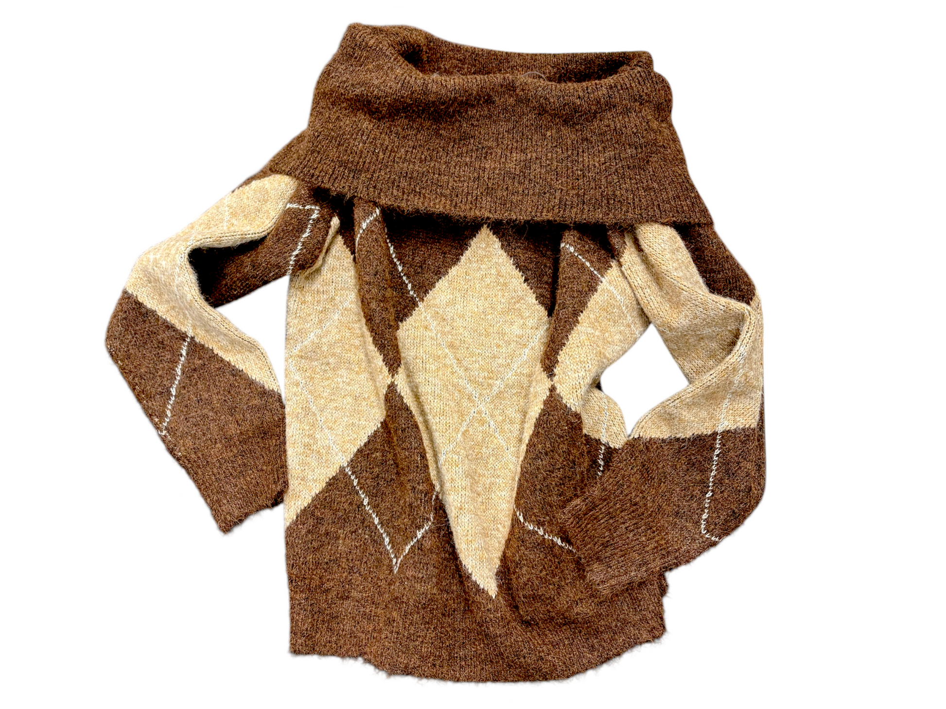Maglia donna, stampa a rombo. Collo a ciambella, super morbido e caldo.