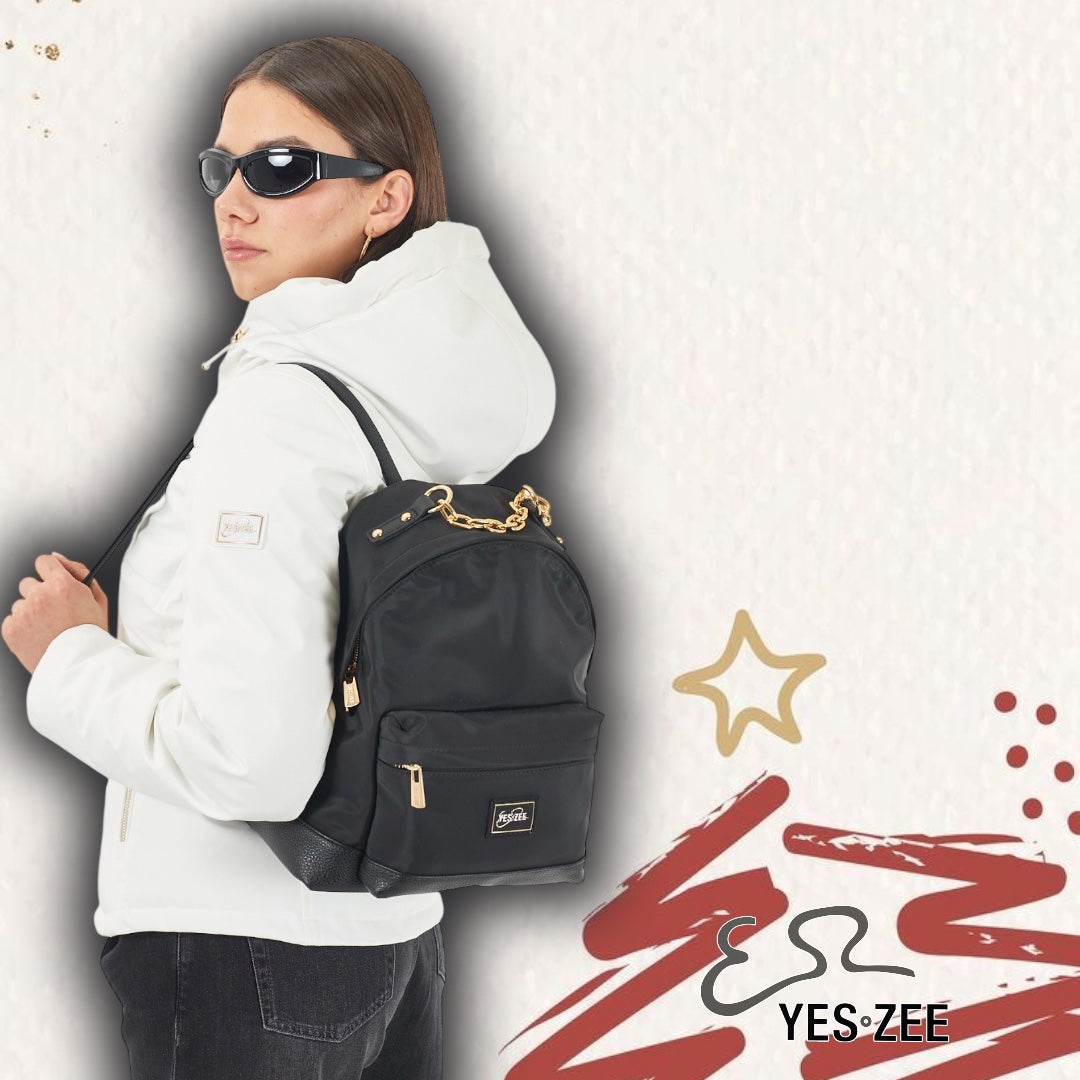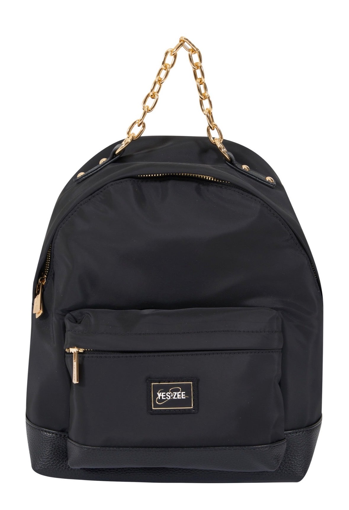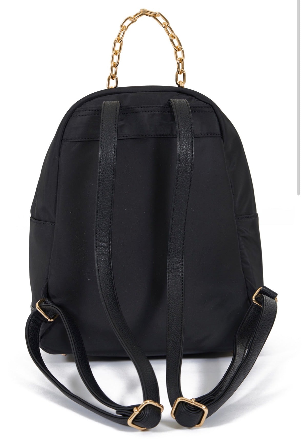 Zainetto donna, tessuto tecnico, con spallini regolabili, ampia tasca esterna. Catena d’orata.